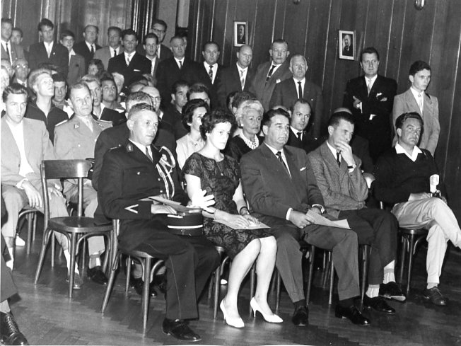 Wilhelm gen. Willi Pöppinghaus (Generalschatzmeister der Fédération Internationale de Sauvetage - FIS), Louise Pitet (vormalige Generalsekretärin der FIS), Madame N. N. Mouline (Rabat, Marokko, Ehefrau des stellvertretenden FIS-Generalsekretärs Dr. med. N. N. Mouline), Frau Pöppinghaus [Josefine Pöppinghaus geb. Triffterer] und Klaus Bartnitzke, aufgenommen anlässlich der Veranstaltung (Photographie, Abzug, schwarz-weiß) als Nr. P-96 zur Photosammlung entnommen. Marianne Pöppinghaus (Tochter von Wilhelm gen. Willi Pöppinghaus), Frau N. N. Pascual (?, Madrid, Spanien), Madame N. N. Mouline (Rabat, Marokko, Ehefrau des stellvertretenden FIS-Generalsekretärs Dr. med. N. N. Mouline), Dr. med. Josef Peter Reusch und Werner Hölters, aufgenommen anlässlich der Generalversammlung der Fédération Internationale de Sauvetage (FIS) in Essen am 29. und 30. Januar 1966 (Photographie, Abzug, schwarz-weiß) als Nr. P-97 zur Photosammlung entnommen.