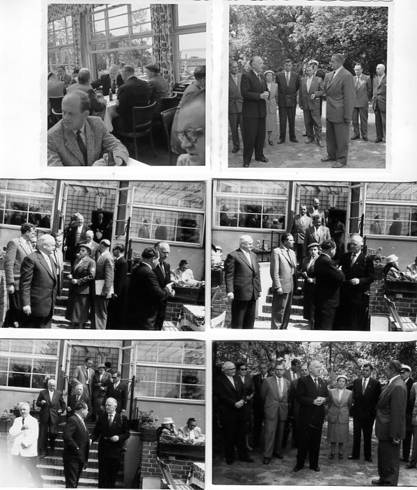 Empfang der Mitglieder des Präsidialrats durch den Berliner Senat, vertreten durch Regierungsdirektor N. N. Andersson, Senatsverwaltung für Jugend und Sport des Landes Berlin, im Restaurant Grunewaldturm (Havelchaussee, Berlin-Grunewald) am Sonntag, dem 1. Juni 1958, 11.00 Uhr, im Rahmen der Sitzung des Präsidialrates in Berlin (Fotografien, Abzüge, schwarz-weiß)