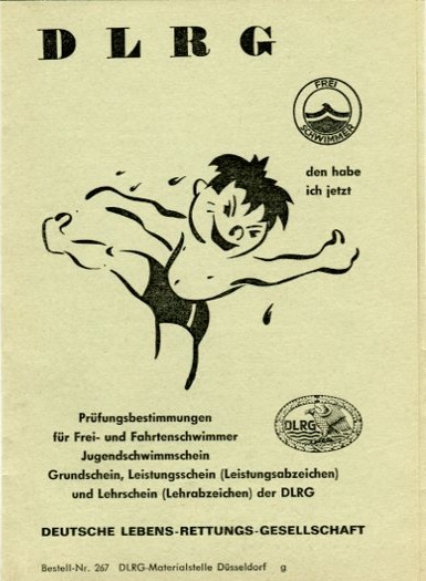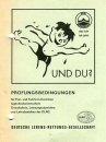 "Und Du? - Prüfungsbedingungen für Frei- und Fahrtenschwimmen, Jugendschwimmschein, Grundschein, Leistungsabzeichen und Lehrabzeichen der DLRG" (Faltblatt / Flyer, Druckstück, gelocht, herausgegeben von der DLRG, Bestellnummer 6100 der DLRG-Materialstelle)