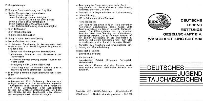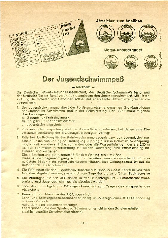 Merkblatt zum Jugendschwimmpass (Faltblatt / Flyer, Druckstück, herausgegeben von der DLRG, Bestellnummer 617 der DLRG-Materialstelle