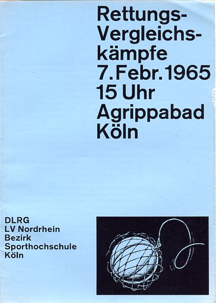 Rettungs-Vergleichskämpfe des DLRG-Landesverbands Nordrhein im Agrippabad Köln am 7. Februar 1965 (Flyer / Faltblatt, Druckstück, vermutlich herausgegeben vom DLRG-Bezirk Deutsche Sporthochschule Köln [DSHS])