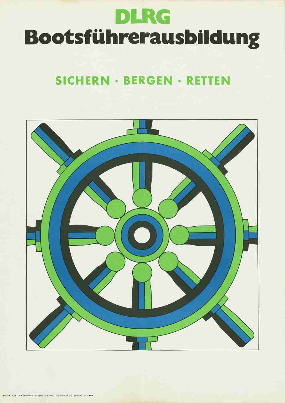"Bootsführerausbildung - Sichern, Bergen, Retten" (Plakat, Druckstück, farbig, DIN A2, 1. Auflage, herausgegeben von der DLRG, Bestellnummer 6094 der DLRG-Materialstelle)
