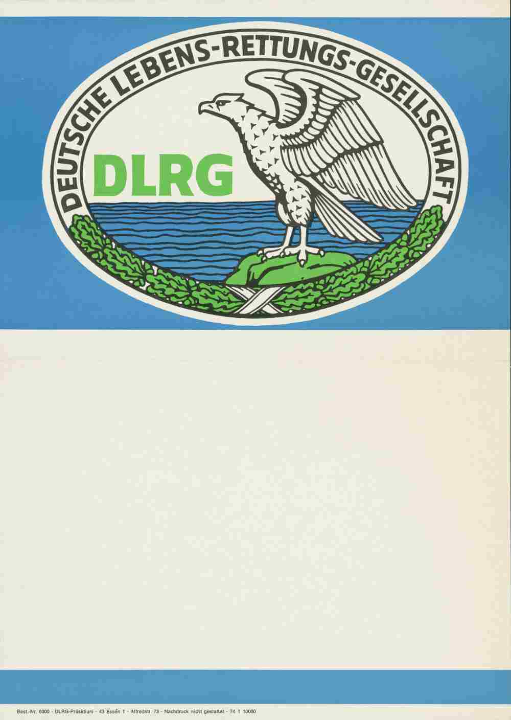 Insertionsplakat / Eindruckplakat mit DLRG-Logo und Wortmarke DLRG (Druckstück, farbig, ca. DIN A3, herausgegeben von der DLRG, Bestellnummer 6000 der DLRG-Materialstelle)