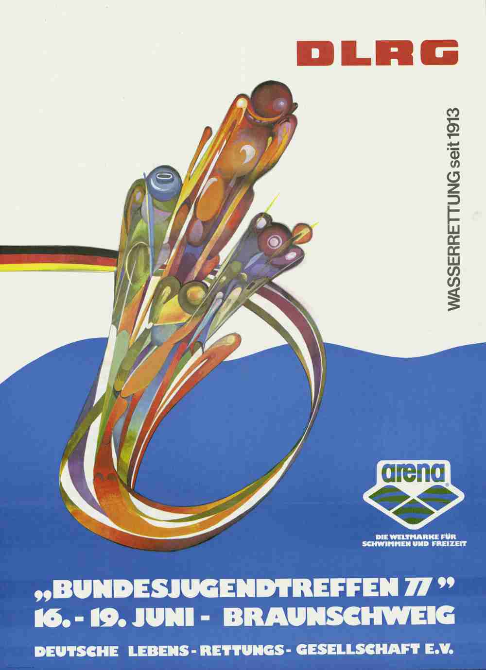 "Bundesjugendtreffen 77" - Braunschweig, 16. bis 19. Juni 1977 (Plakat, Druckstück, farbig, ca. DIN A2, herausgegeben von der DLRG oder von der DLRG-Jugend)