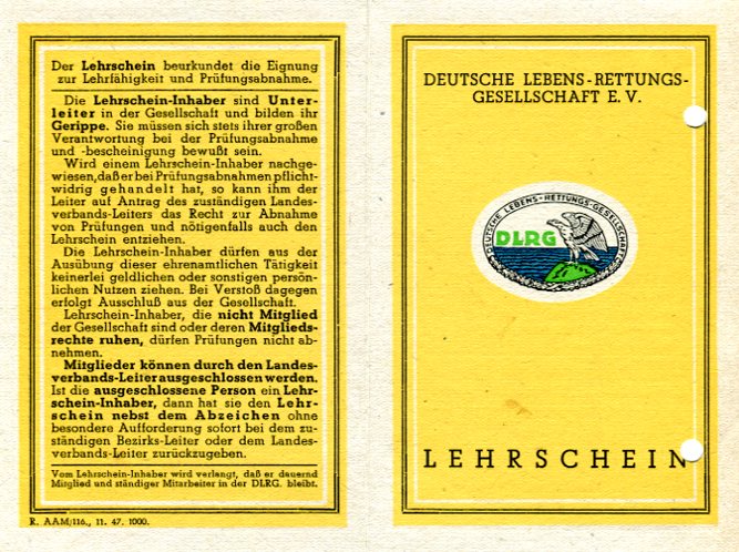 auch: Lehrscheinanträge betreffend den Arbeiter Karl Aschemann (Harsum), Roderich Bothe (Hildesheim), den Handelsvertreter Horst Rosenberg (Hildesheim) und den Studenten Ralph Singelmann (Hildesheim). - Verpflichtungserklärung des Arbeiters Karl Aschemann betreffend die Aufrechterhaltung der Mitgliedschaft in der DLRG für mindestens drei Jahre "und Bereitschaft, während dieser Zeit aktiv für die DLRG lehrend und werbend tätig zu sein" (Nov. 1947).