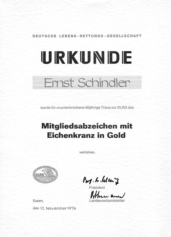August Hoffmann [wohl August Hoffmanns] und Franz Klaes (vorgeschlagen vom Bezirk Krefeld, Sept. 1954). - Lehrer Edmund Goertz und Schneidermeister [Peter] Klinkenberg (vorgeschlagen vom Bezirk Aachen, Sept. 1954). - Emil Obst, Otto Aufsatz, Toni Kahn, Franz Lehmann, Willi Becker sen., Willi Becker jun., Hakob Hitdorf, Günther Wagner, N. N. Jovi, Heinz Leuchten, Peter Reuter, Hermann Becker, Bruno Hartmann, Engelberth Blesen, Trude Tokarsky, Heinz Tokarsky, N. N. Dommermuth, Matthias Ebel, Josef Pape, Otto Zimmermann, Fritz Beran, Werner Pautz, Rudolf Dresch, Hans Rayermann, N. N. Herresbach, Hans Wolfram und Walter Röttgen sowie N. N. Maubach, N. N. Basten, N. N. Schall, N. N. Thimm, N. N. Herwagen, N. N. Reiff, N. N. Römlinghaven und N. N. Offenburg, alle gefallen im Zweiten Weltkrieg (vorgeschlagen vom Bezirk Köln Stadt und Land, Sept. 1954). - Hermann Röder (vorgeschlagen vom Bezirk Wuppertal, Sept. 1954). - Josef Dick, Georg Schulz und Heinz Starck (vorgeschlagen vom Bezirk Rhein-Wupper, Sitz Leverkusen, Sept. 1954). - Willi Eckstein, Josef Fritz, Karl Hochgeschurz, Willi Klinkenberg, Math. Clev. und Heinrich Spilles (vorgeschlagen vom Bezirk Euskirchen, Okt. 1954). - Ersatz für das an Franz-Hermann Ziemer (damals Student in Breslau) 1925 verliehene Rettungsabzeichen in Silber, eingetragen im Soldbuch (1960). - Ehrungsanträge betreffend den Schüler Achim Hoitz, wohnhaft in Niederdollendorf bei Bonn (Rettung am 24. Febr. 1969), den Straßenreiniger Arnold Dosot und den Küster August Jungfels, beide wohnhaft in Aachen (gemeinsame Rettungstat am 22. Dez. 1969; Antrag unvollständig), den Schüler Kurt Lüken, wohnhaft in Eilendorf (Rettung am 6. Juni 1971) und den Schlosser Hans Adamik (Rettung am 24. Juni 1971; Antrag unvollständig).